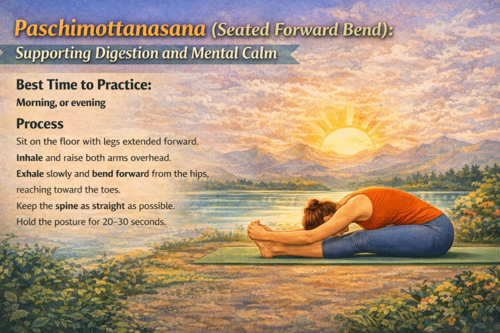 5. Paschimottanasana (Seated Forward Bend): Supporting Digestion and Mental Calm