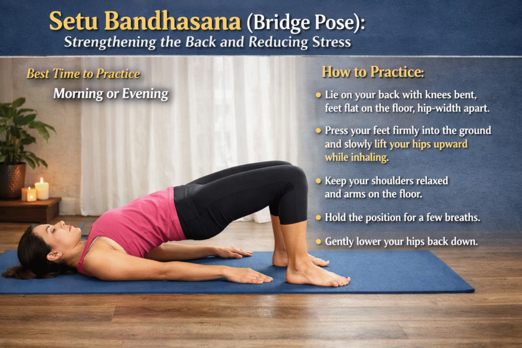 7. Setu Bandhasana (Bridge Pose): Strengthening the Back and Reducing Stress