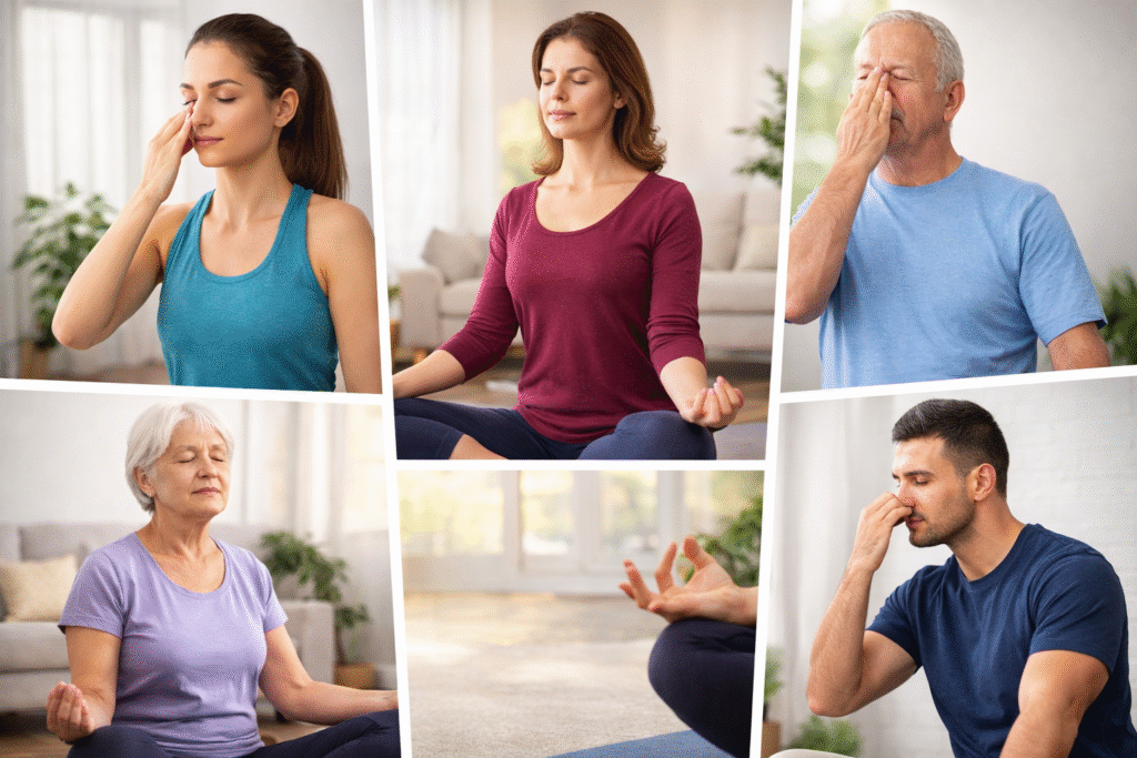 In many Bihar and Varanasi ashrams, monks practice Anulom Vilom before meditation. A senior monk describes it as âequalizing the inner energies.â After years of practice, he experiences slow, deep breathing even during challenging situations, reflecting emotional stability and clarity.