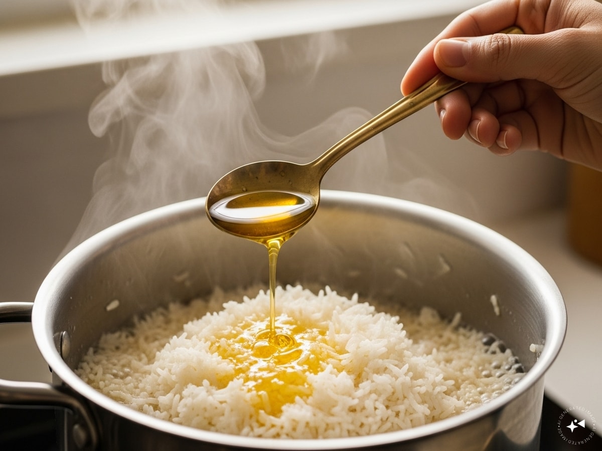Adding one spoon of ghee while cooking makes the rice grains plump and tasty. This method is not only found in old traditional recipes, but is also accepted by modern kitchen science.