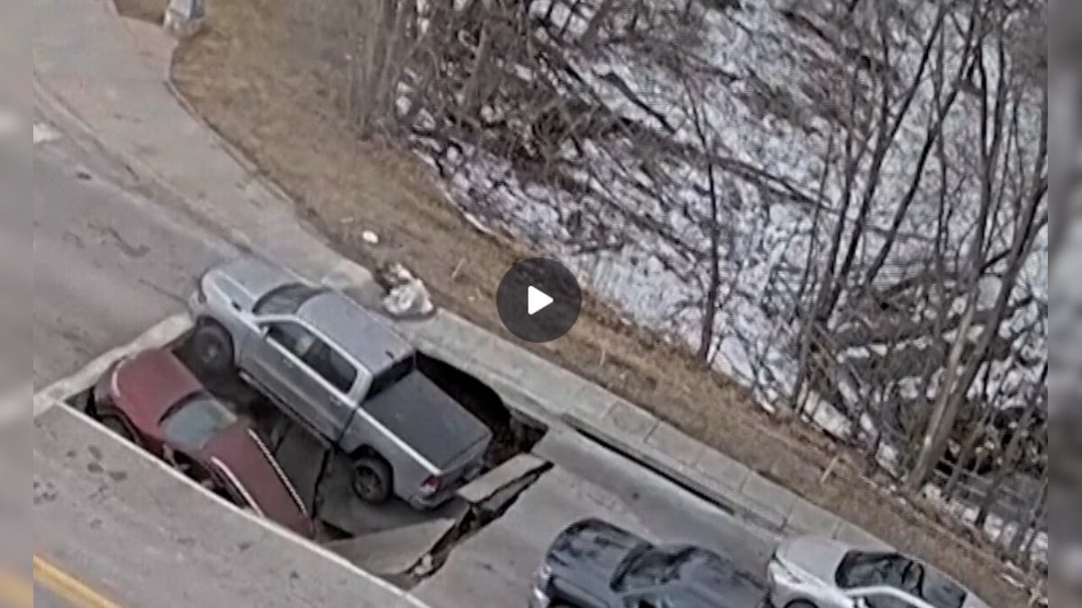 A horrifying incident occurred near the University of Nebraska-Omaha on Tuesday afternoon. The university’s public safety cameras captured how the ground suddenly burst at the busy intersection of 67th and Pacific Streets and an SUV and a pickup truck parked there fell straight into the deep sinkhole. In this horrific accident that took place around 3:30 pm, the asphalt of the road collapsed like a deck of cards, due to which both the vehicles got stuck. Fortunately, the driver of the pickup truck himself managed to get out and with the help of eyewitnesses, he also pulled the SUV driver out safely, thereby averting a major loss of life. Officials believe that this accident may have happened due to bursting of water pipeline, and now with the help of crane, the work of repairing the road has been started by taking out the vehicles.