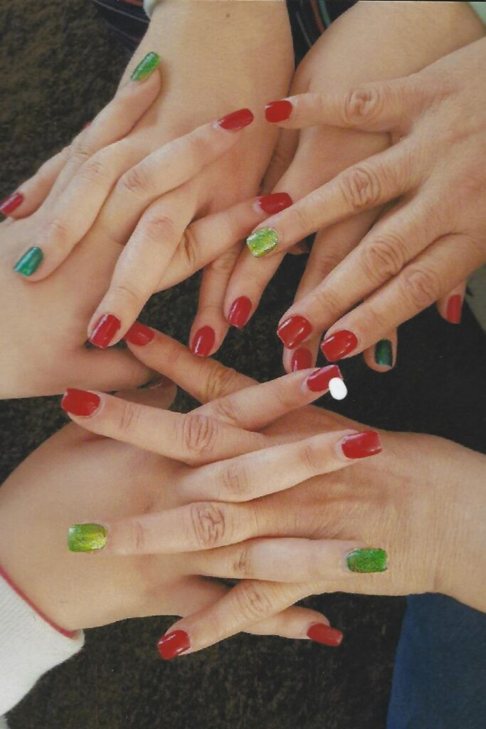 Almond nails have tapered sides and rounded tips, creating a slimming and elegant appearance. The design enhances finger length visually. This shape is often seen on red carpets and special events across the USA.